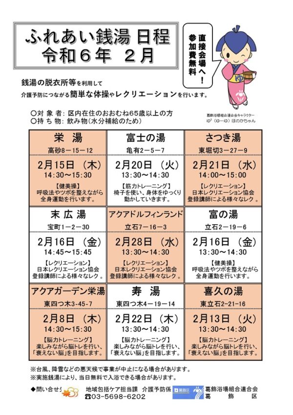 葛飾銭湯から季節のイベント情報などをいち早くお届けします!