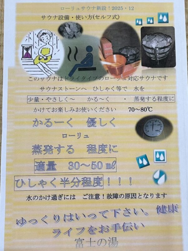 【お知らせ/富士の湯(亀有)】男湯のサウナが再開します