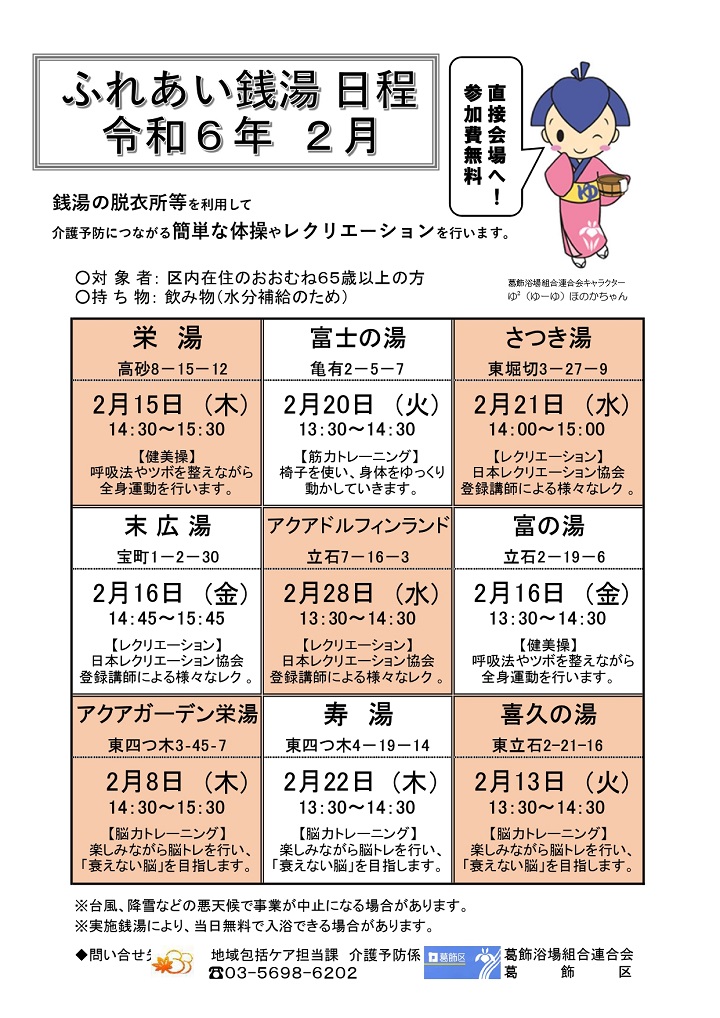 【ふれあい銭湯】令和8年2月 実施日程